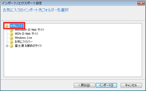 - 「インポート先のお気に入りフォルダーを選択」と表示されます。