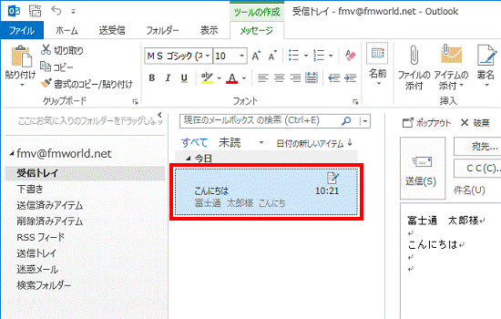 文字のサイズは一時的に変更されるため、別のメールを表示すると元のサイズに戻ります。