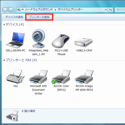 - 「プリンターの追加」をクリックします。