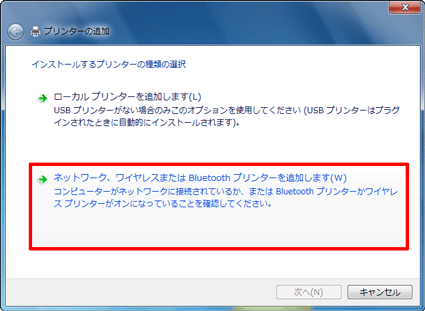 - 「ネットワーク、ワイヤレスまたはBluetoothプリンターを追加します」をクリックします。