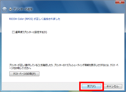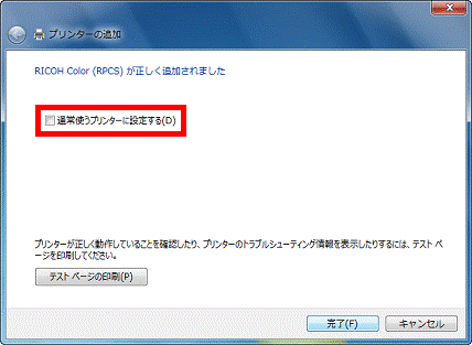 - 追加したプリンターを通常使うプリンターにするときは「通常使うプリンターに設定する」をクリックし、チェックを付けます。