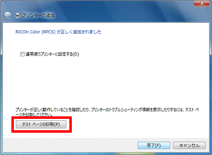 追加したプリンターでテスト印刷をする場合は、「テストページの印刷」ボタンをクリックします。