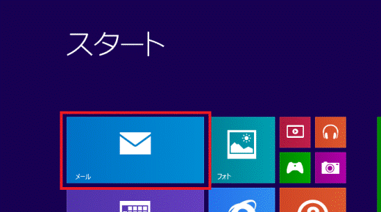 デスクトップの場合は、画面の右下にマウスポインターを移動し、チャームが表示されたら「スタート」をクリックします。 - メールが起動します。