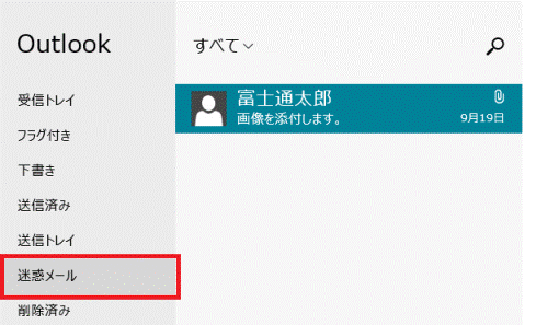 - 既に「迷惑メール」が表示されている場合は、「迷惑メール」をクリックします。
