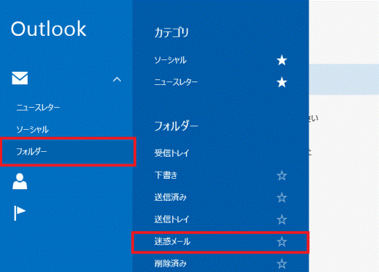 「フォルダー」→「迷惑メール」の順にクリックします。