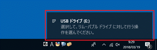 USBメモリ / SDメモリカードを接続したときに、画面の右下に通知が表示される場合があります。