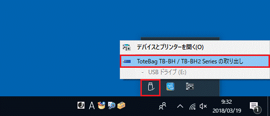 アドバイスUSBメモリやSDメモリカードによっては、「ハードウェアを安全に取り外してメディアを取り出す」アイコンが表示されない場合があります。