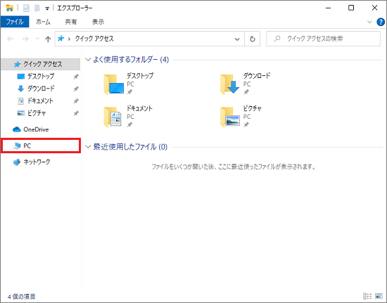 アドバイス - 画面左の「PC」をクリックします。