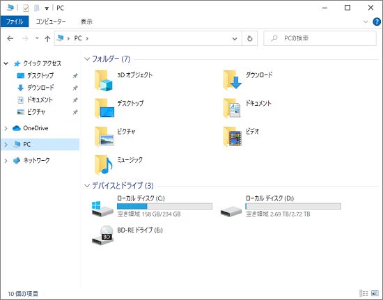 - 「PC」に表示されたUSBメモリ、または、SDメモリカードのアイコンをクリックします。
