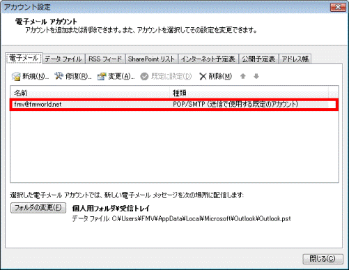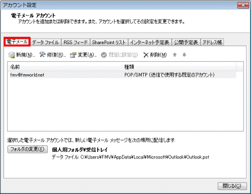 - 「電子メール」タブの中の設定したいメールアカウントをクリックします。