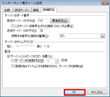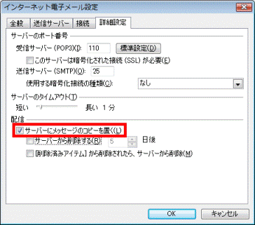 - 「配信」欄の「サーバーにメッセージのコピーを置く」をクリックし、チェックを付ける、または外します。