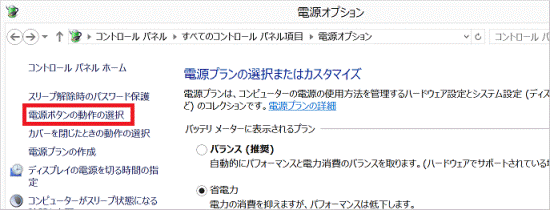 「電源ボタンの動作の選択」、または「電源ボタンの動作を選択する」をクリックします。