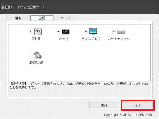 - 「富士通ハードウェア診断ツール」が表示されます。