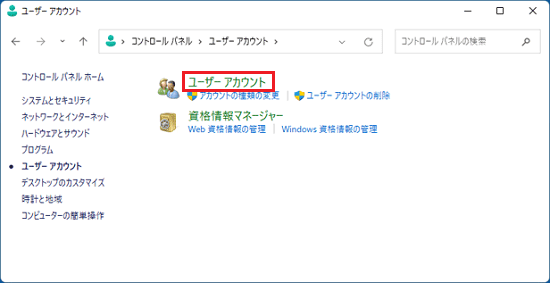 「ユーザーアカウント」をクリックします。