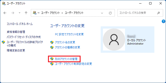 - 現在サインインしているユーザー以外のアカウントのパスワードを変更する場合は、アカウントの種類が「管理者」のユーザーアカウントでサインインしている必要があります。