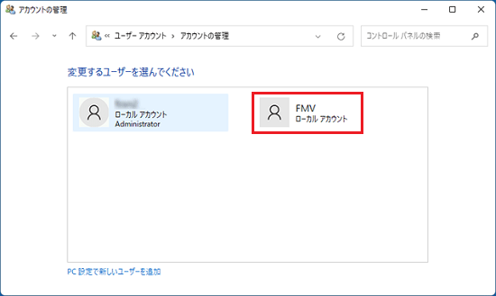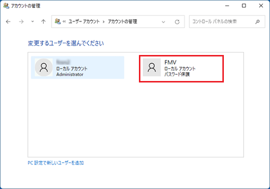 - 「ユーザーアカウント」が表示されます。