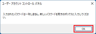 アドバイス「新しいパスワード」と「新しいパスワードの確認」に入力したパスワードが異なっていると、「入力されたパスワードは一致しません。」と表示されます。