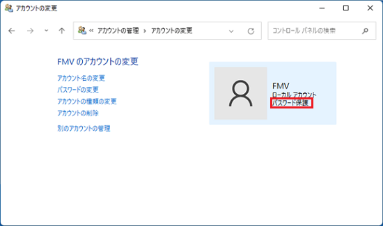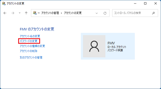 アドバイス「パスワード」が表示されない場合や、「変更」ボタンをクリックした後「Microsoft アカウント」のウィンドウが表示され、PINやパスワードの入力などを求められた場合、お使いのアカウントはMicrosoft アカウントです。