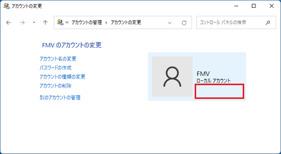- 「アカウントの変更」が表示されます。