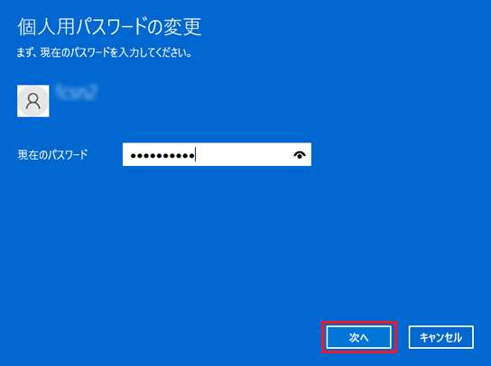 次の手順で、現在サインインしているユーザーアカウントのパスワードを変更します。