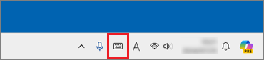 タッチキーボードは、タスクバー端に表示されているタッチキーボードアイコンをクリックすると表示できます。