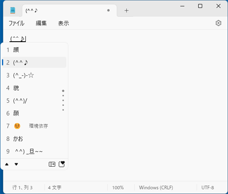 お好みの顔文字を選択して、【Enter】キーを押します。