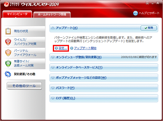[ウイルスバスター2009] ウイルスのパターンファイルやプログラムをアップデートする方法を教えてください。