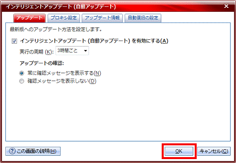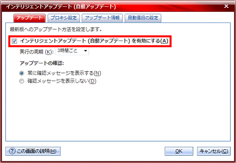 - 「インテリジェントアップデート(自動アップデート)を有効にする」をクリックし、チェックを付けます。