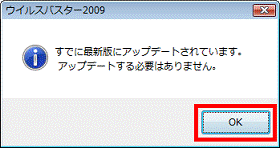「すでに最新版にアップデートされています。」と表示された場合は、「OK」ボタンをクリックします。