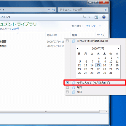 [Windows 7] 特定の時期に更新したファイルだけを表示する方法を教えてください。