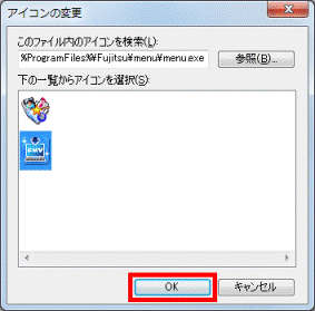 他の画像を選択したい場合は、「参照」ボタンをクリックし、アイコンにしたい画像を保存したファイルを選択します。 - アイコンの画像を選択したら、「OK」ボタンをクリックします。