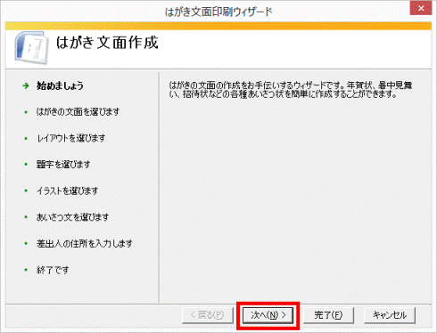 「はがき文面印刷ウィザード」を使用して、はがきの文面を簡単に作成するにはどうすればよいですか。
