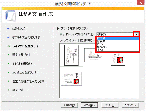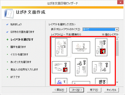 - 表示されたレイアウトの一覧の中から、お好みのレイアウトをクリックします。