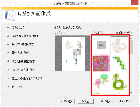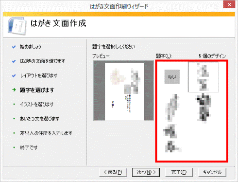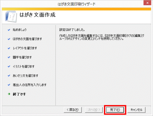 - 完成した、はがきの文面のデザインを画面で確認します。