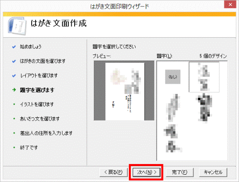 - 題字のデザインを選択したら、「次へ」ボタンをクリックします。