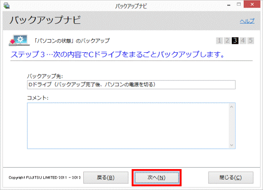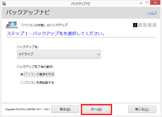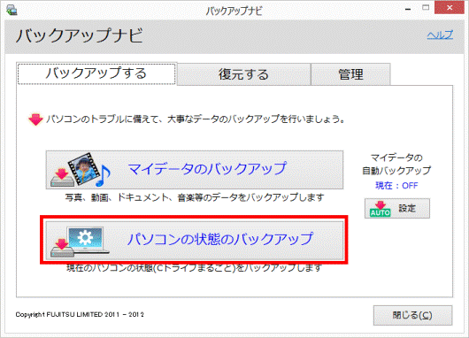 [バックアップナビ] 「パソコンの状態」をバックアップする方法を教えてください。(2012年10月発表モデル〜2015年5月発表モデル)