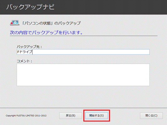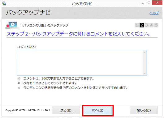 • バックアップ日時は、コメントとは別に保存されるため、入力する必要はありません。