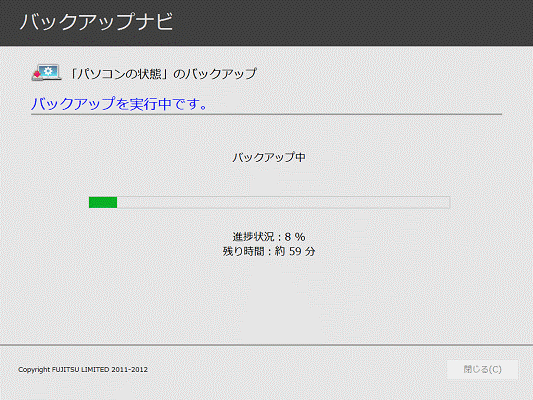 • LIFEBOOKをお使いの場合、バックアップ中に液晶ディスプレイを閉じると、パソコンの故障につながります。液晶ディスプレイは開いた状態で、バックアップを行ってください。