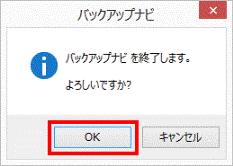 7. バックアップが完了すると、「バックアップを終了しました。」と表示されます。