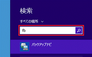 ここでは、検索チャームからバックアップナビを起動し、DドライブまたはUSB接続の外付けハードディスク、増設用内蔵ハードディスクユニットへパソコンの状態をバックアップします。