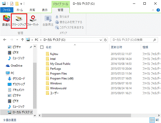 「システムファイルのクリーンアップ」ボタンをクリックします。