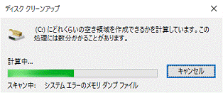 - 「(C:)にどれくらいの空き領域を作成できるかを計算しています。」と表示されます。