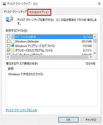 ディスククリーンアップでは、不要なファイルを削除し、ハードディスクの空き容量を増やします。