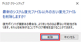 - 「最新のシステム復元ファイル以外の古い復元ファイルを削除しますか?」と表示されます。