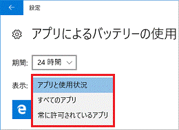 Windows 10でバッテリー駆動時に、パソコンの機能やアプリがどれくらいバッテリーを消費しているか確認する方法を教えてください。