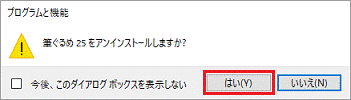 - 「筆ぐるめ xx をアンインストールしますか?」と表示されます。