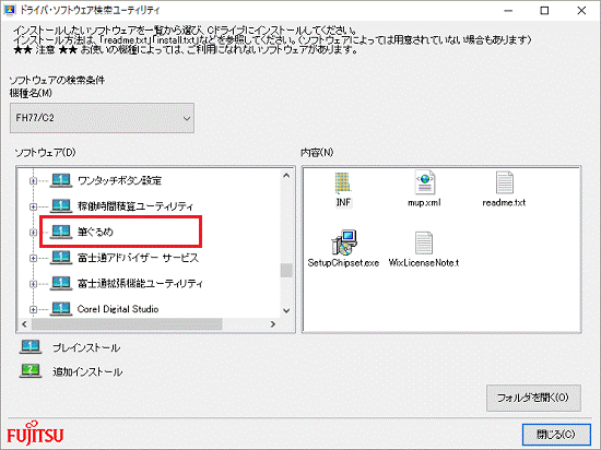 - 「ソフトウェア」欄の「筆ぐるめ」をクリックします。