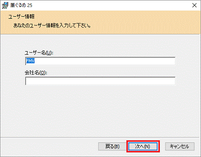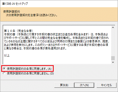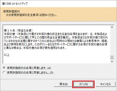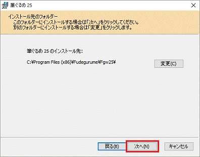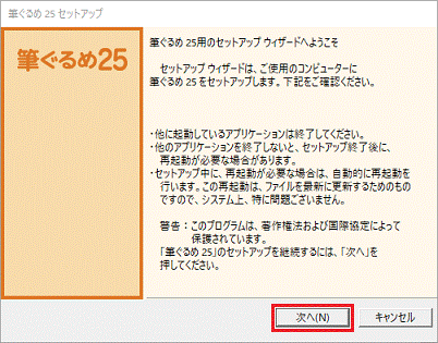 - 「筆ぐるめ xx用のセットアップ ウィザードへようこそ」と表示されます。