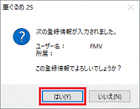 「ユーザー名」を確認し、「はい」ボタンをクリックします。