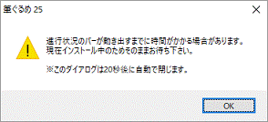 また、時間がかかることについて説明のメッセージが表示されても、メッセージは自動で閉じられます。